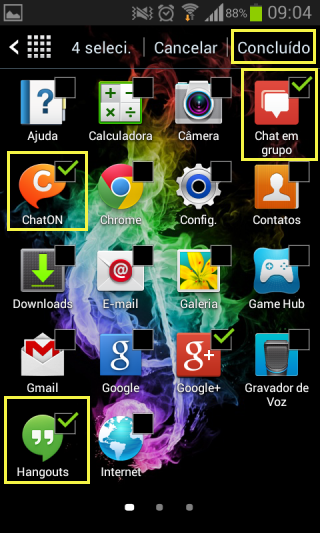 3. Agora, basta selecionar os aplicativos que você quer excluir da tela do seu Android e tocar “Concluído”, no canto superior direito do visor: