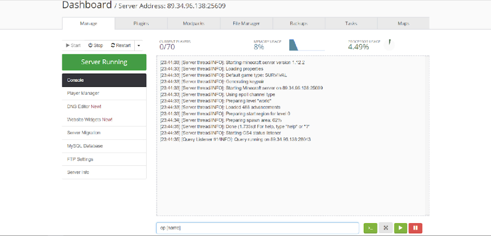 No futuro, você poderá digitar ‘/op [name]’ dentro do seu servidor para tornar mais pessoas operadoras. Mas, para a primeira vez, isso deve ser feito no painel de controle.