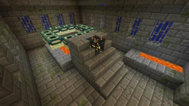 Se você ficar achando salas sem saídas, apenas continue indo e cavando ao redor das áreas adjacentes para localizar mais salas. Isso pode levar algum tempo até você achar a sala do portal do Fim, mas você irá saber quando você estiver lá – procure por tijolos de pedra como este: