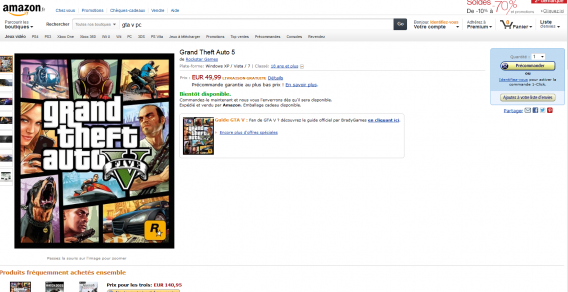 A divulgação do GTA V para PC na Amazon Francesa pode ser interpretada como outra pista que confirma o lançamento da adaptação em breve. Vale ressaltar que algumas páginas regionais da Amazon haviam incluído o GTA V para PC em suas listas, mas esta é primeira vez que o título pode ser reservado.