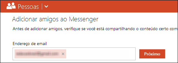 4. Digite o e-mail da pessoa que você quer adicionar aos seus contatos e depois clique em “Próximo”:
