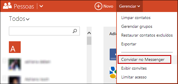 3. No menu principal, clique em “Gerenciar” e em seguida selecione “Convidar no Messenger”: